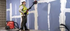 Sanding drywall, gypsum and plasterboard filler – variable speed motor gives you better control over surface finish and removal rate