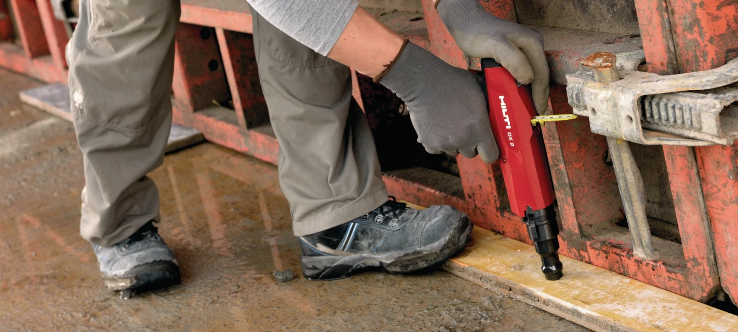Semi-automatic powder actuated tool for fastening single nails in medium-duty applications on both concrete and steel