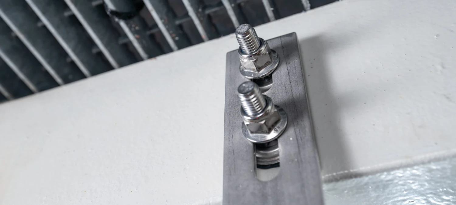 Complete fastening point solution including sealing washer for corrosion protection and safety flange nut for more reliable threaded connection