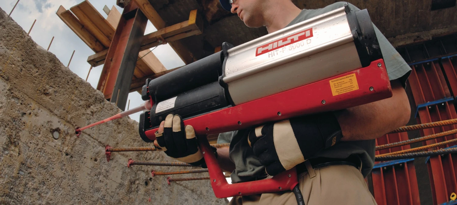Injecting Hilti HIT anchor chemicals in a variety of conditions including deep holes, overhead holes and underwater