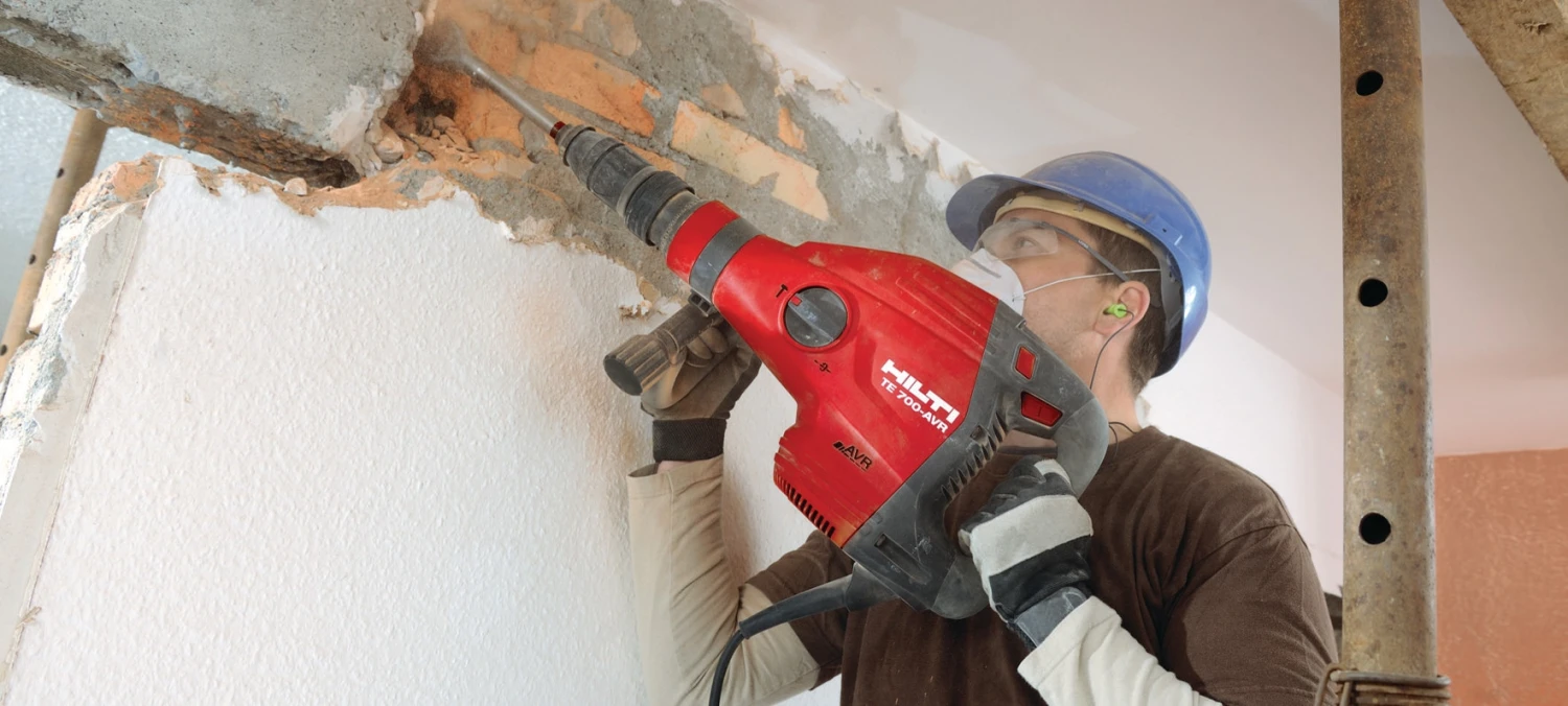 Powerful SDS Max (TE-Y) demolition hammer for heavy-duty chiseling in concrete and masonry, with Active Vibration Reduction (AVR)