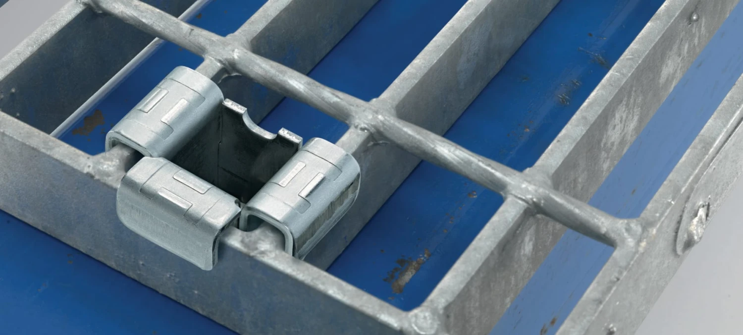 Two versions – grating fastening saddle with three ears for rectangular grating, or four ears for square grating
